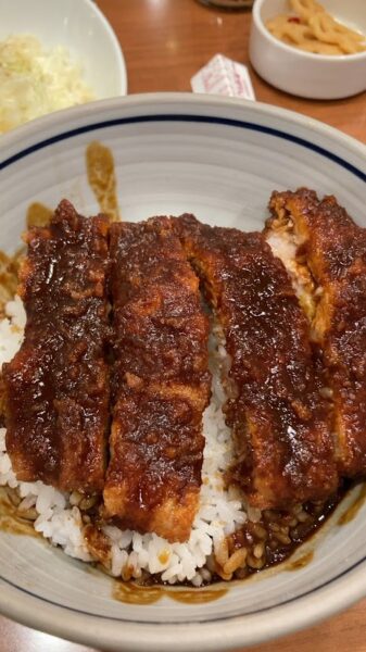 夜は矢場とん。味噌カツ丼。これは娘たちに一切れずつ分けた後なので少な目に見えちゃいますが、本当はもっとボリューミーでした。