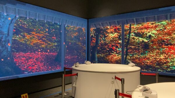 中世堺の街並みが白いテーブルの上にあらわれ、ミニチュアみたいな人々が動いていました。