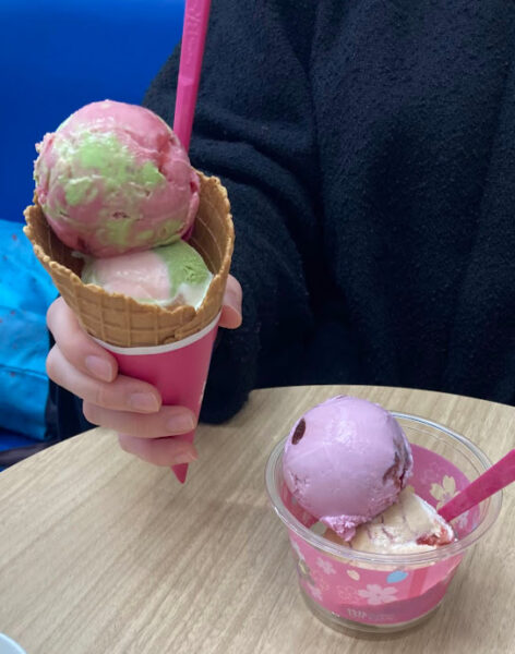 「サーティーワン行きたい」と言われ「寒くね?」と思ったのですが、行ってみたらバーガンディチェリーのシーズンでした。ので、ついつい私もダブルを頼んでしまい……おいしく食べました。