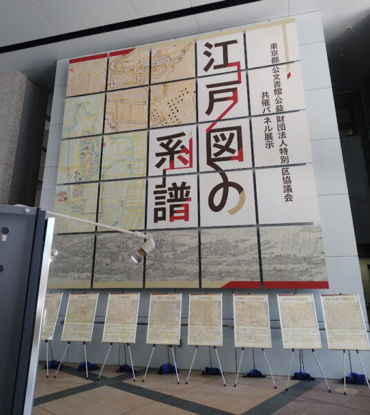 ビルの一階のオープンスペースに昔の東京の地図が展示されていました。